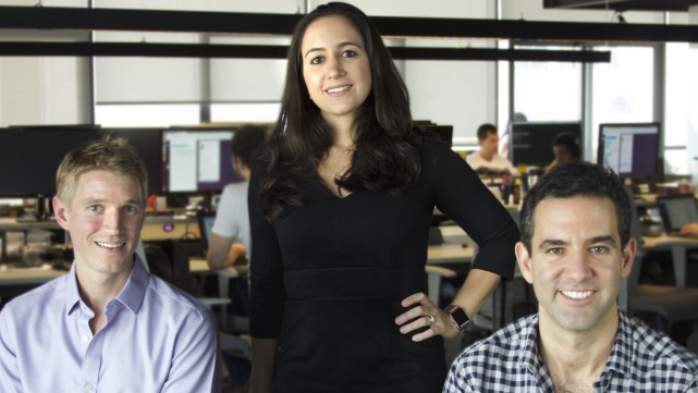 En la imagen superior David Vélez(derecha),fundador de Nubank,junto a sus socios,la brasileña Cristina Junquera(de pie) y el estadounidense Edward Wible(extremo izquierdo).