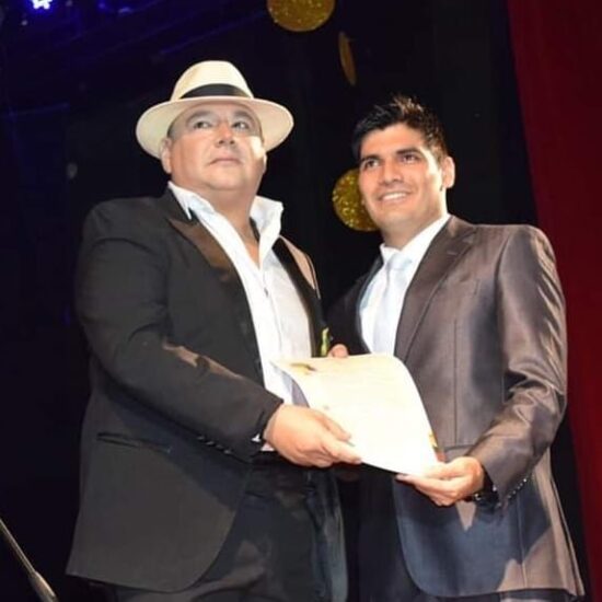 Imagen superior.El artista Carlos Alberto Londoño recibe la Medalla Alejandro Cabal Pombo de manos del Alcalde de Guadalajara de Buga Julián Andrés Latorre Herrada.
