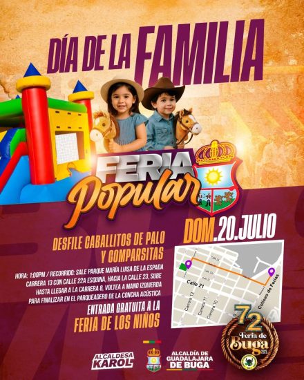 La CABALGATA INFANTIL FERIA DE BUGA VERSIÓN 72; los niños participarán en la Cabalgata Infantil con caballitos de Palo en la que también habrán Comparsitas Infantiles