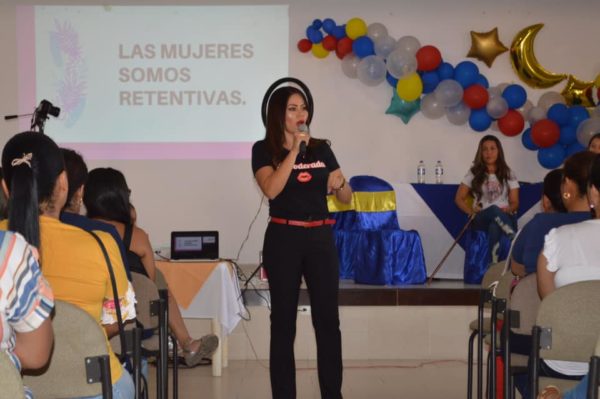 La candidata al Concejo de Guadalajara de Buga  Carolina Ruiz durante el taller  "Maquilla tu corazón" llevado a cabo con 200 mujeres en la Fundación Hotel Casa del Peregrino de la Ciudad Señora.