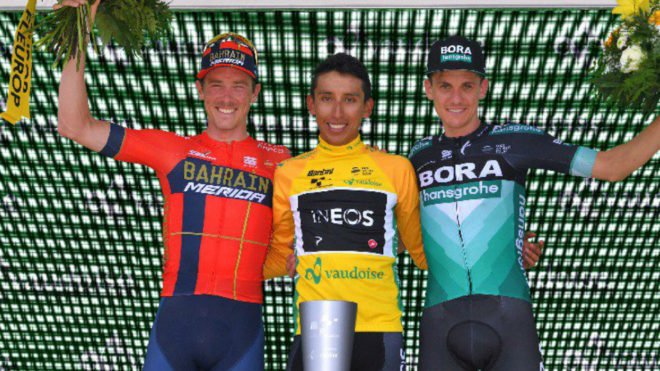 El capo estrella del fuerte escuadrón británico, afrontaba esta novena y última etapa con 19 segundos de ventaja sobre Rohan Dennis (Bahrain-Merida). El colombiano no le dio tregua a un difícil australiano que se quería quedar con el primer cajón del podio en territorio suizo.