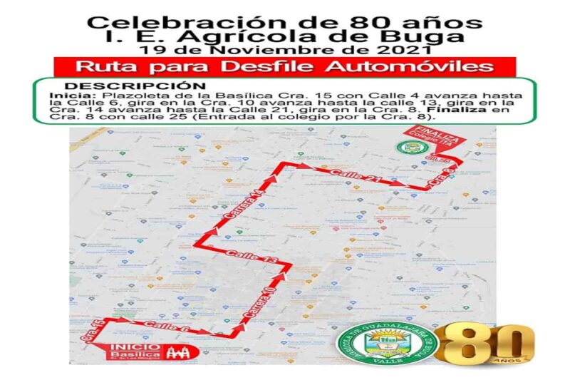 Desfile de autos con un recorrido de carrozas por las calles de la ciudad de Guadalajara de Buga, dará inicio este viernes 19 de noviembre a la celebración de los 80 años de la Institución Educativa Agrícola ITA de Guadalajara de Buga.