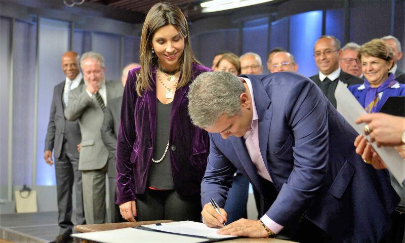 El Presidente Duque, la Ministra de Educación y los rectores durante la firma del acuerdo que permitirá avanzar en el fortalecimiento de la educación superior pública del país.