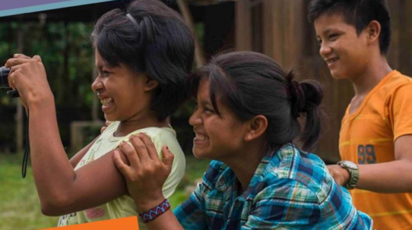 Imagen superior de niños creando sus videos.Foto del Ministerio de Cultura de Colombia.