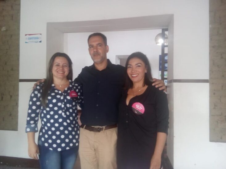 Imagen superior. De derecha a izquierda.Sandra Llulieth González Mujer CAFAM Valle del Cauca, Alfredo Arroyo, representante legal de ASSFA de España y Ludirlena Pérez,Mujer CAFAM Colombia.