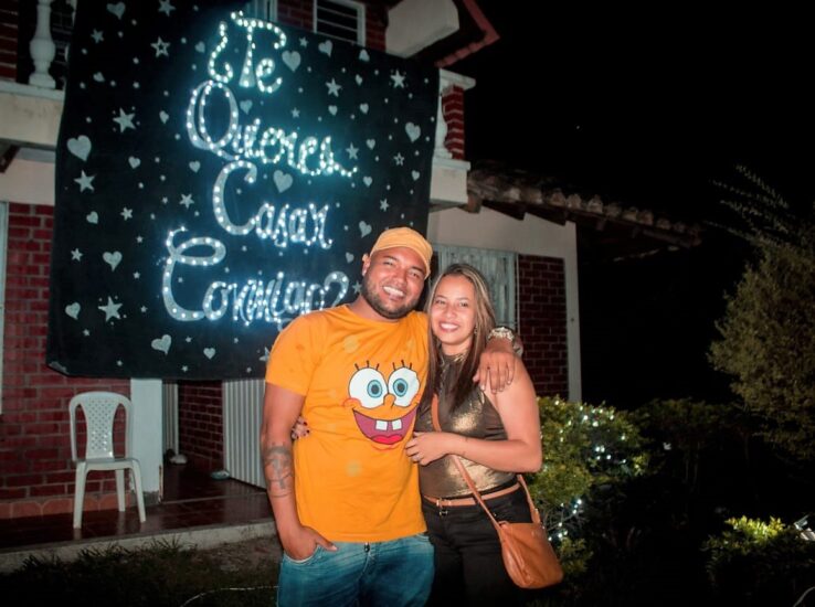 Sociales en Guacarí-Valle.Artista Oly Mora sorprende a su novia Marcela Concha